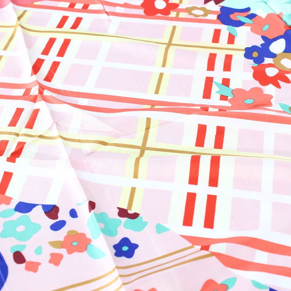 Foulard seta quadrato rosa Lilia è 100% in mano seta con particolare fantasia multicolore.