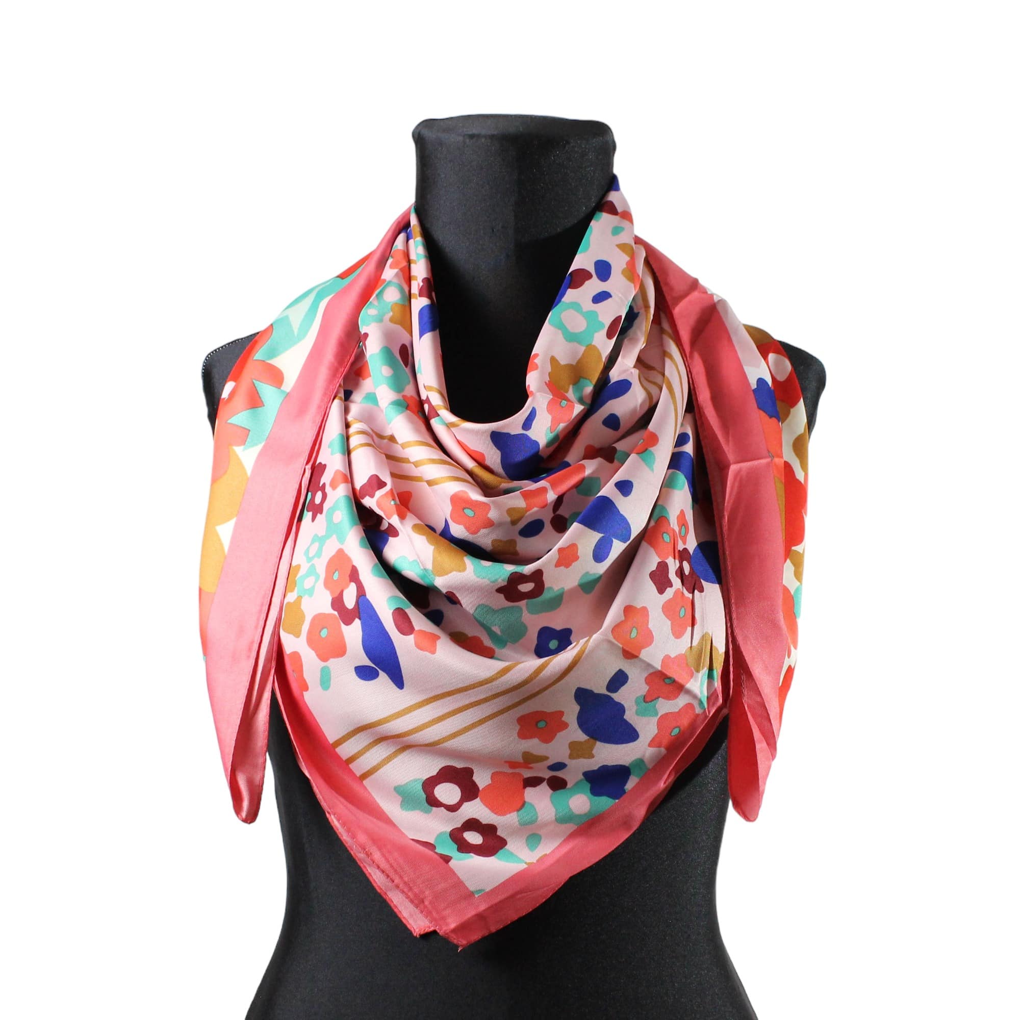 Foulard seta quadrato rosa Lilia misura 100×100 cm