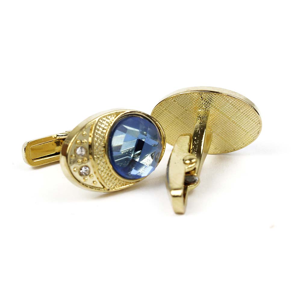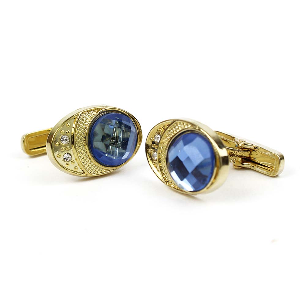 Gemelli per camicia oro con strass dalla forma ovale. I gemelli sono in acciaio inossidabile con pietra blu e strass incastonati, la circonferenza è di 1,5 cm. Questi gemelli sono ideali per outfit formali ed eleganti.