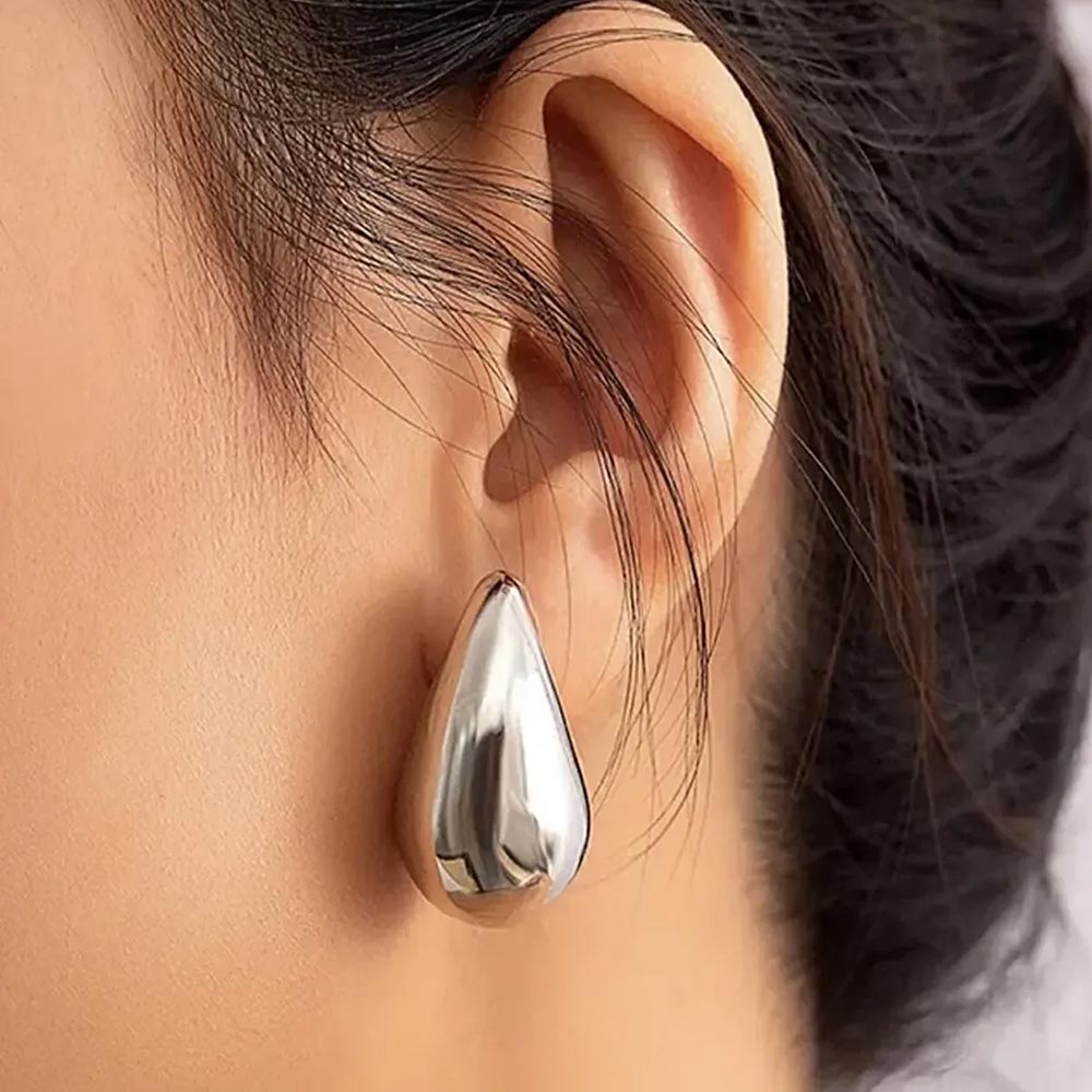 Orecchini goccia lucidi argento Drop sono realizzati in acciaio inossidabile.