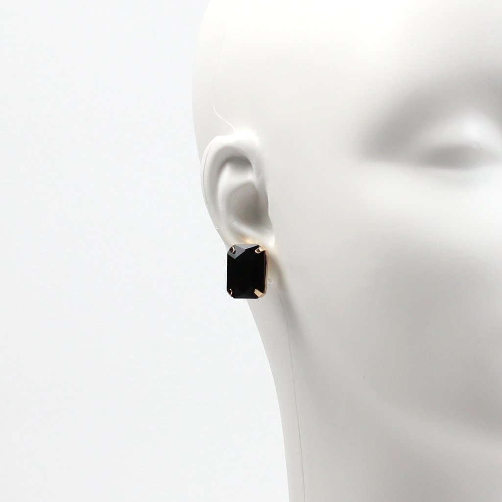 Orecchini neri base oro con pietra sfaccettata Desy, presentano una luminosissima pietra rettangolare taglio smeraldo incastonata in una montatura dorata, capace di catturare e riflettere la luce con straordinaria brillantezza. Con una dimensione di 2 x 1,5 cm, offrono un look raffinato e di grande impatto, ideale per aggiungere un tocco di classe sia agli outfit quotidiani che alle occasioni speciali.