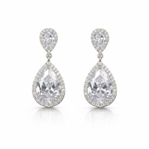 Orecchini pendenti con cristalli oro Isa con chiusura a perno, realizzati in pietra Cubic Zirconia, circondati da piccoli strass luminosi.
