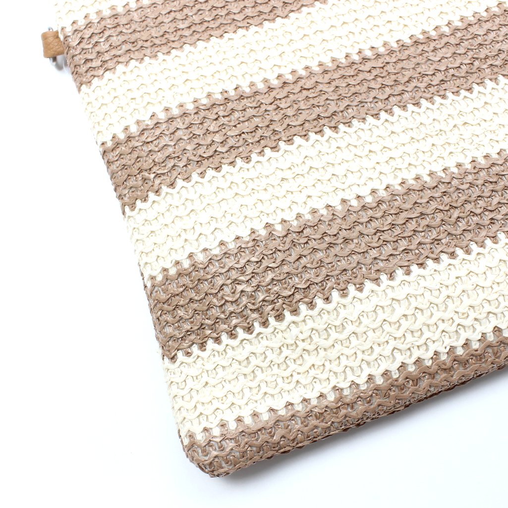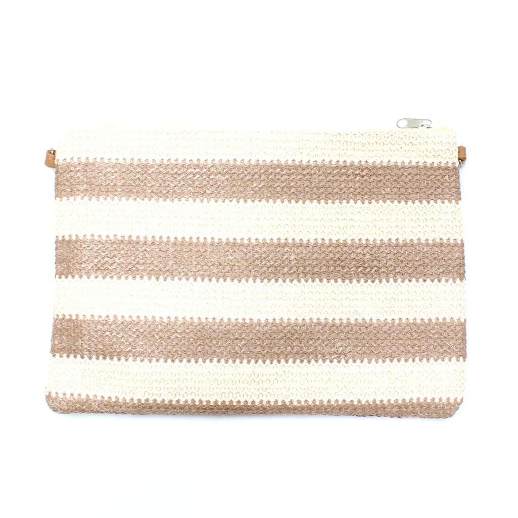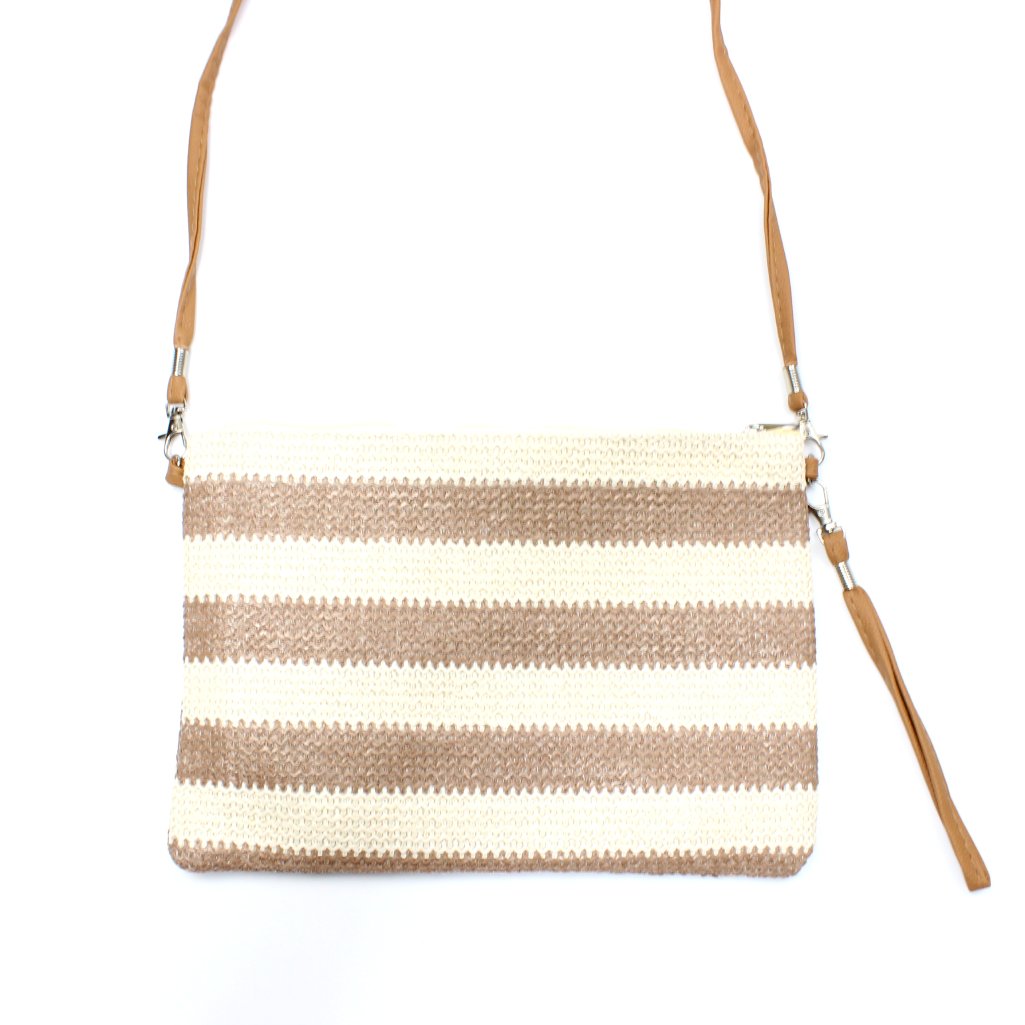 Pochette a righe in paglia con tracolla marrone, aggiungi un tocco di stile al tuo look estivo con questa elegante pochette in paglia a righe marrone e panna. Realizzata in materiale intrecciato effetto paglia, è leggera, pratica e perfetta per accompagnarti in vacanza, al mare o nelle passeggiate in città. Le dimensioni compatte la rendono ideale per contenere l’essenziale, portafoglio, telefono, chiavi e piccoli oggetti personali. Dotata di chiusura con zip e completamente foderata all’interno. Può essere portata a mano grazie al comodo laccetto da polso oppure a spalla con la tracolla removibile da 110 cm, per adattarsi a ogni occasione, dal giorno alla sera.