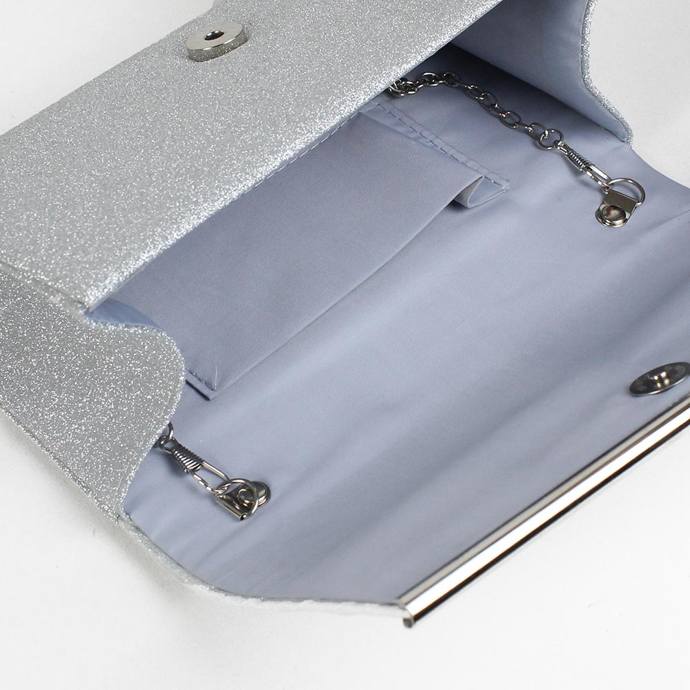 Pochette da cerimonia con brillantini argento Giusy è una borsetta elegante con finish brillantinato.