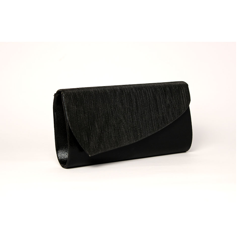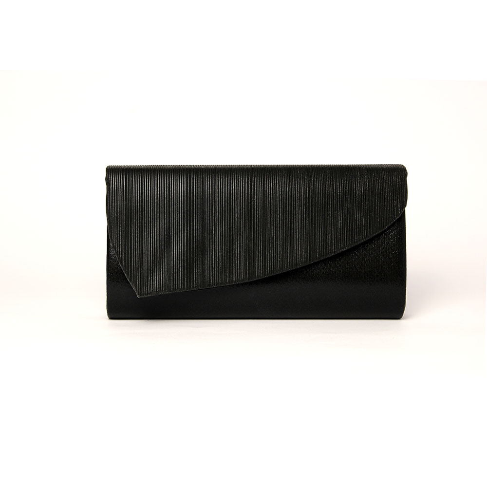 La pochette ha una finitura lucida e righe iridescenti ricoperta da un mantello brillantinato e luminoso.POCHETTE NERA BRILLANTINATA KARILA (2)Accediamo al suo interno grazie alla comoda chiusura con bottone magnetico.