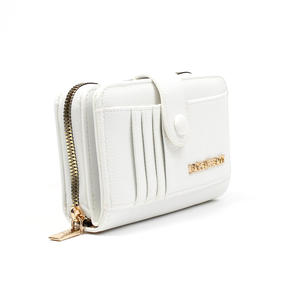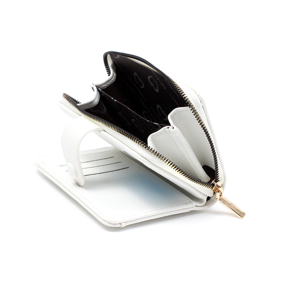 Portafoglio bianco Baci e Abbracci con cerniera realizzato in morbida similpelle con logo frontale. Dotato di 10 scomparti per carte e tessere, uno scomparto per banconote, 3 tasche per documenti e assegni, un comodo scomparto con cerniera per un accesso rapido, perfetto sia per le monete che per le banconote.