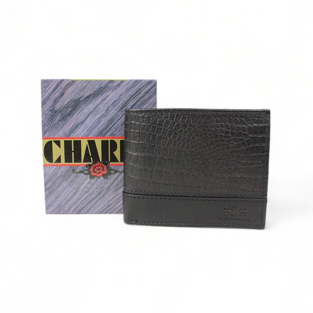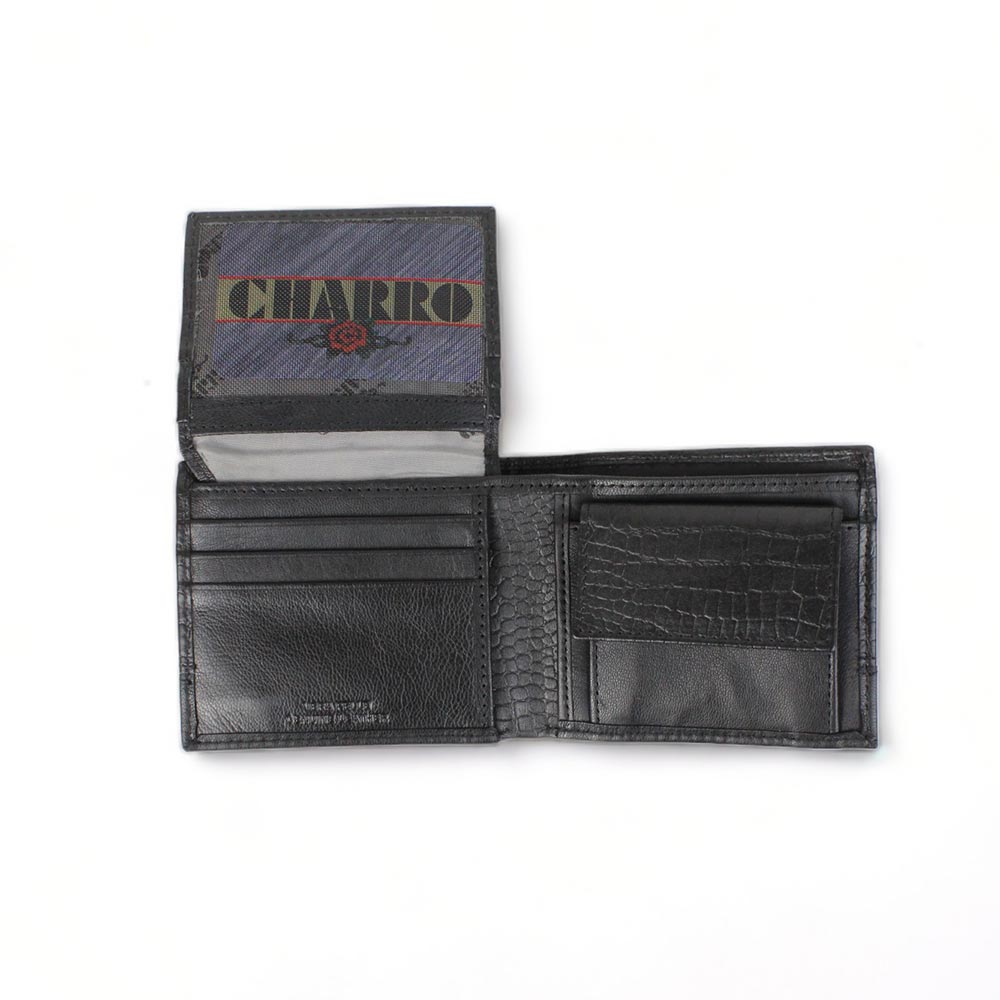 Portafoglio Charro nero con ribaltina in vera pelle morbido e compatto.