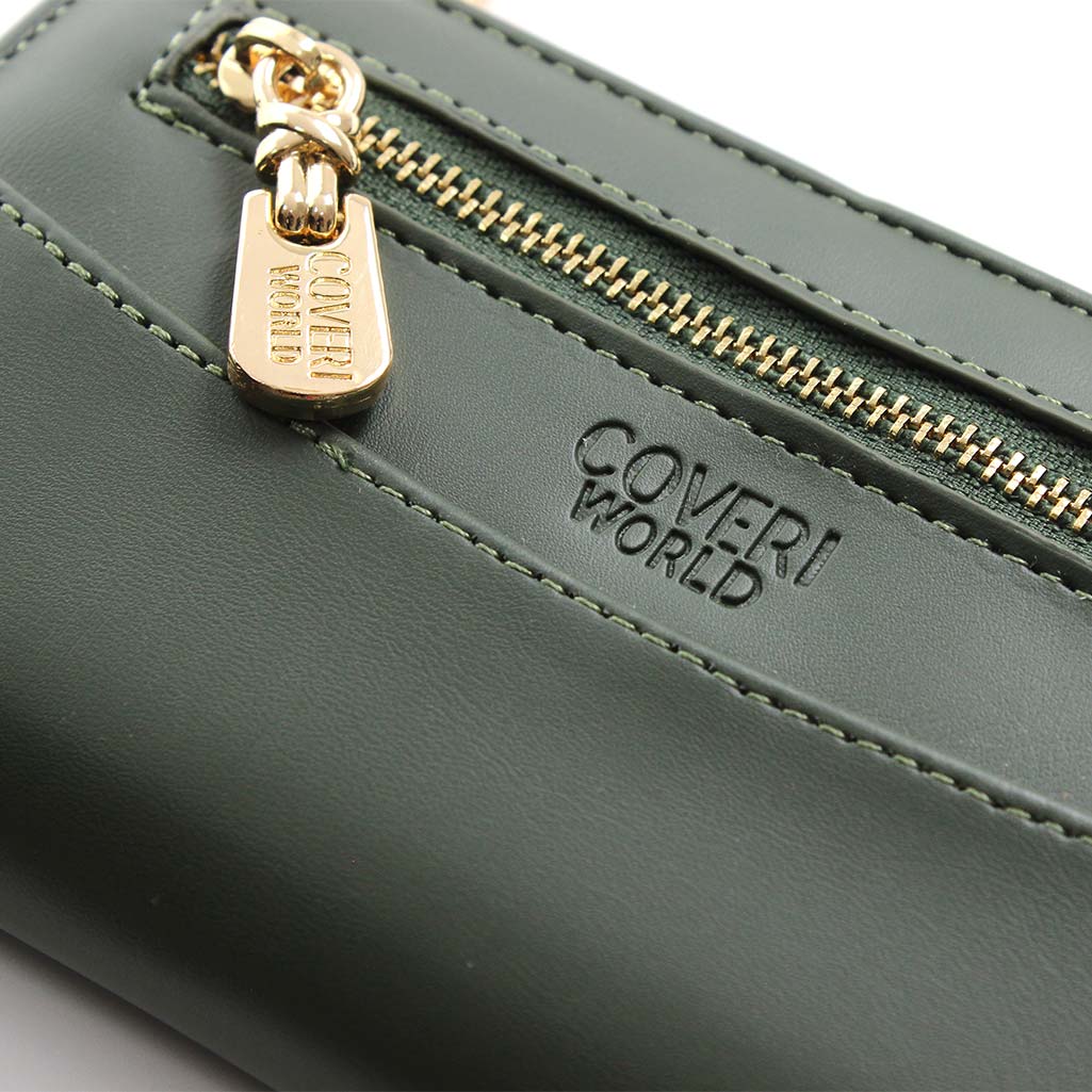 Portafoglio Coveri World verde con cerniere elegante e funzionale, è realizzato in materiale resistente con dettagli curati. Dotato di 7 scomparti per carte, è ideale per organizzare carte di credito e tessere. Ha uno scomparto per banconote, 4 tasche per documenti, e 2 comode tasche con cerniera, perfette per contenere monete o banconote in modo sicuro. Le zip dorate aggiungono un tocco di classe, mentre il design compatto lo rende versatile e raffinato.