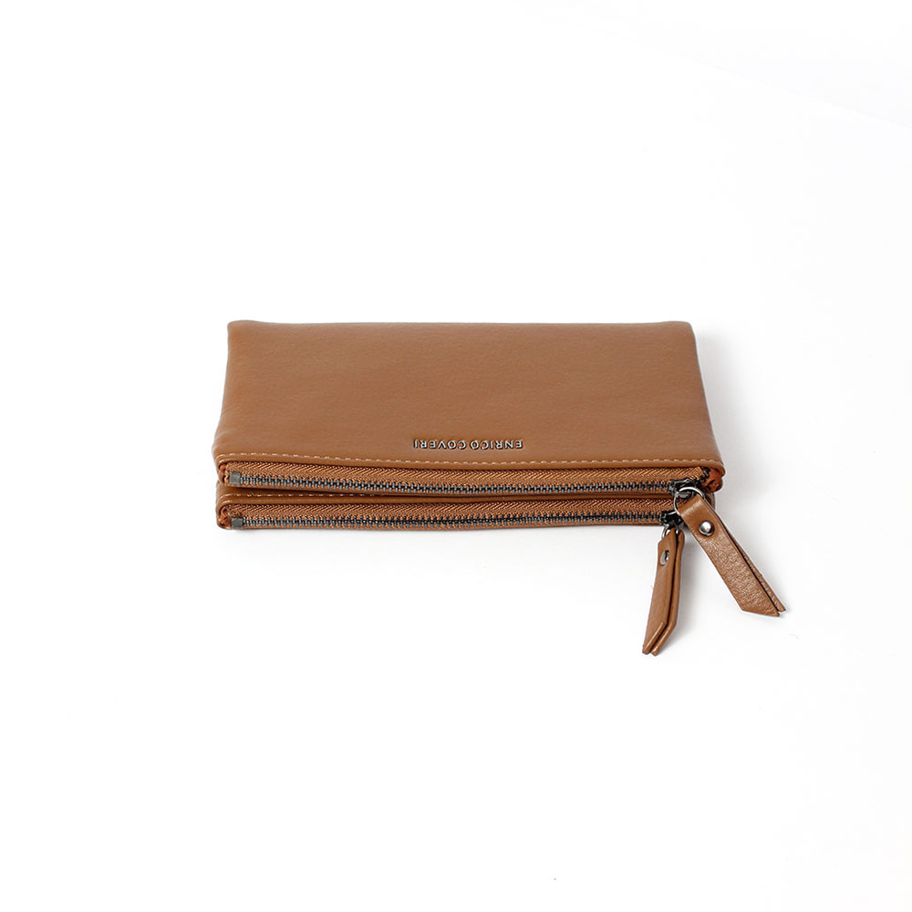 Accediamo al suo interno tramite bottoncini a pressione dove troviamo tasche porta tessere, scomparti porta documenti e portafoto.Portafoglio enrico coveri marrone doppia cerniera KarilaAl tatto si presenta molto soffice, la pelle è liscia e maneggevole, il portafogli è comodo e ricco di spazi, comprende la scatolina originale del marchio Enrico Coveri.