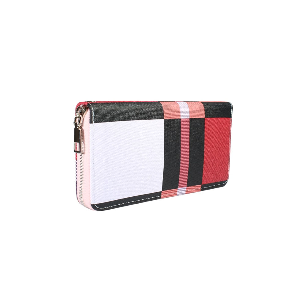 Portafoglio geometrico rosa con cinturino Mykonos è un portafogli estremamente maneggevole, al tatto si presenta ruvido e puntinato, la struttura è rigida e compatta. Al suo interno troviamo un taschino portamonete con cerniera, diversi scomparti porta banconote e 10 taschini portatessere. Foderato in color moro, mykonos può essere portato a mano grazie alla piccola tracolla rimovibile con moschettone in acciaio.