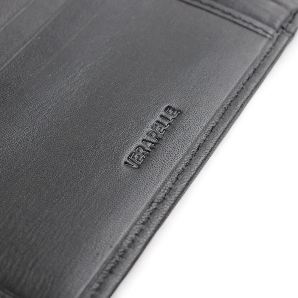 Portafoglio Kevin jeans nero in vera pelle con logo inciso.