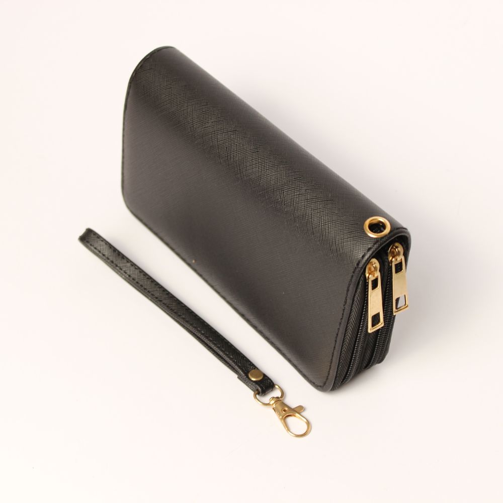 In questo portafoglio troviamo anche 10 tasche portatessere e un portamonete con cerniera. Inoltre ha una piccola tracolla rimovibile con gancio a moschettone in acciaio.