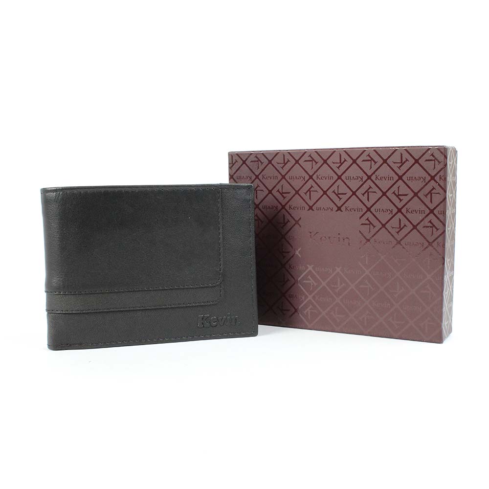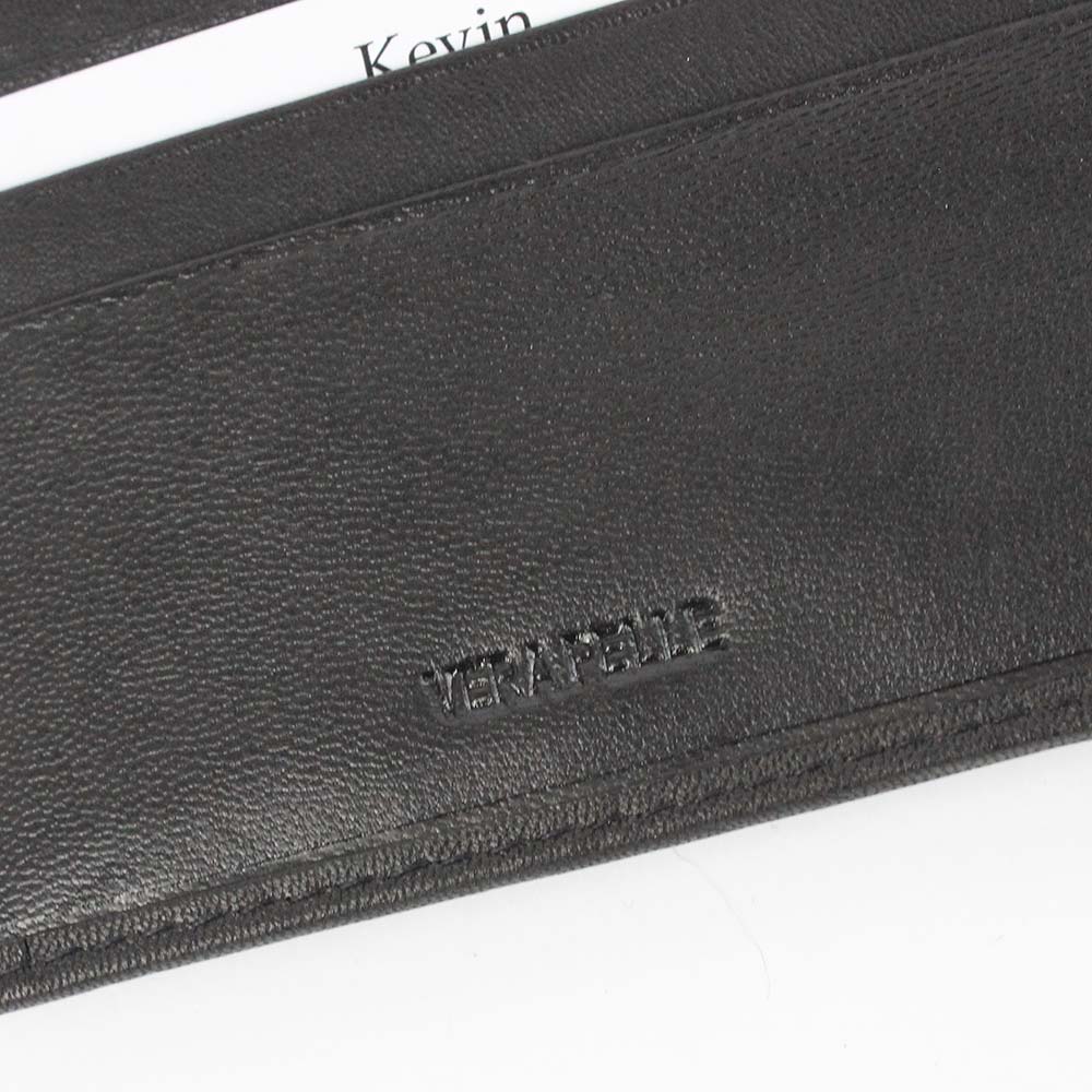 Portafoglio nero Kevin jeans in vera pelle con logo inciso.