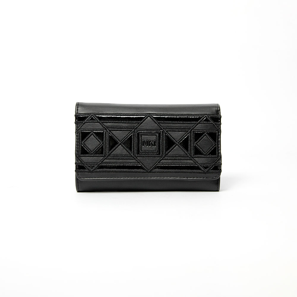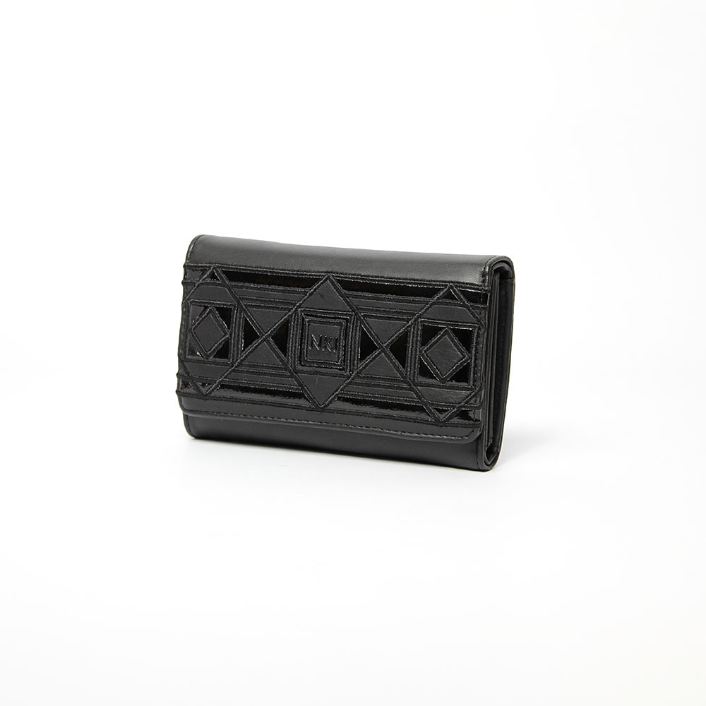 Portafoglio NKI nero tre ante Lady in morbida pelle sintetica con fantasia geometrica.