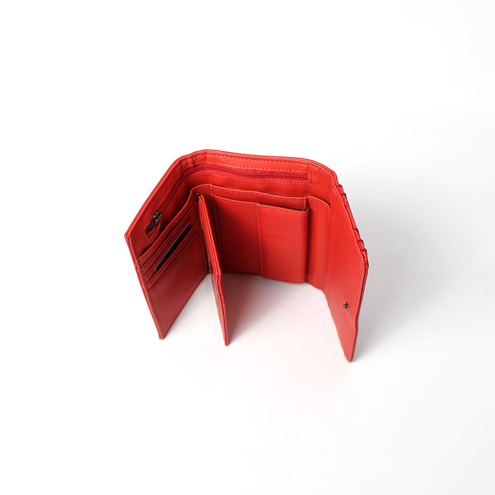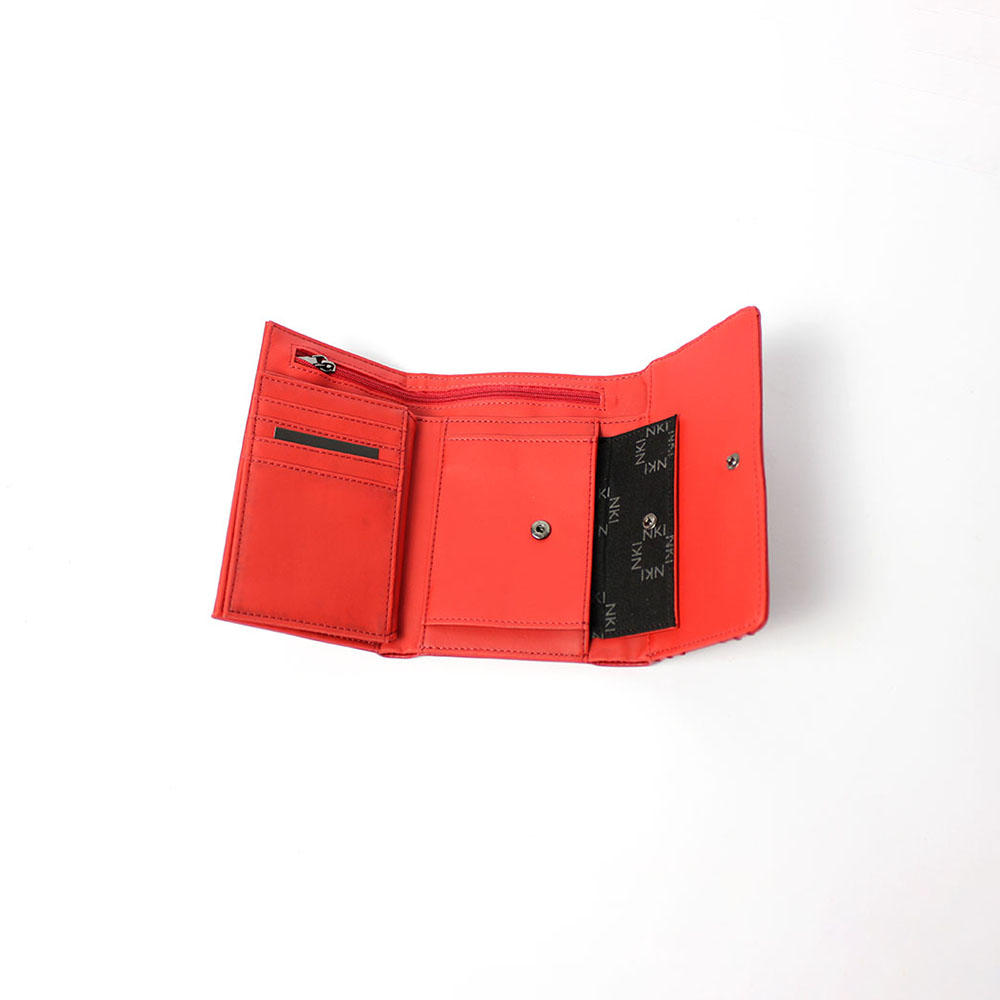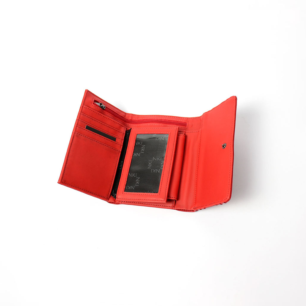 Portafoglio NKI rosso tre ante Lady misura 16 x 10 x 3 cm.