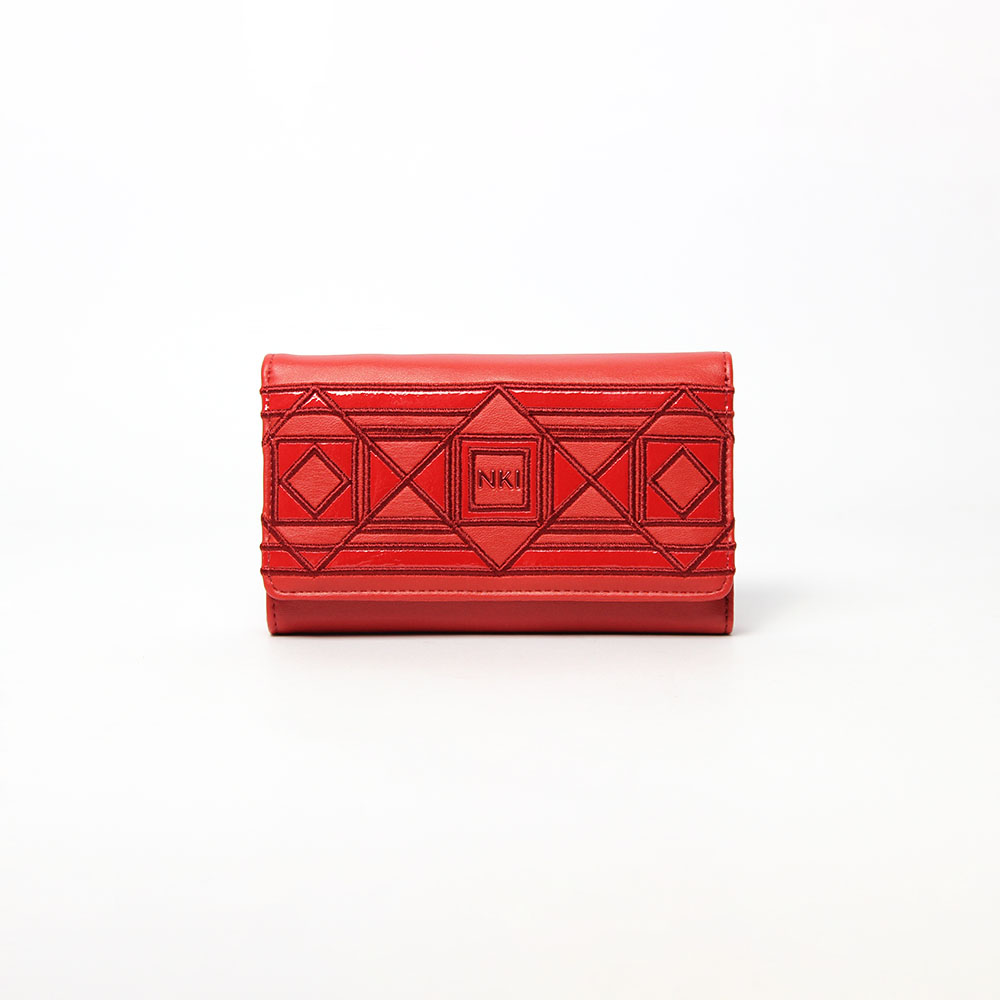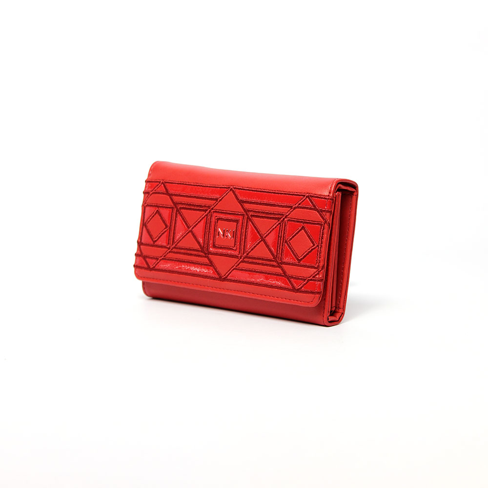 Portafoglio NKI rosso tre ante Lady in morbida pelle sintetica con fantasia geometrica.
