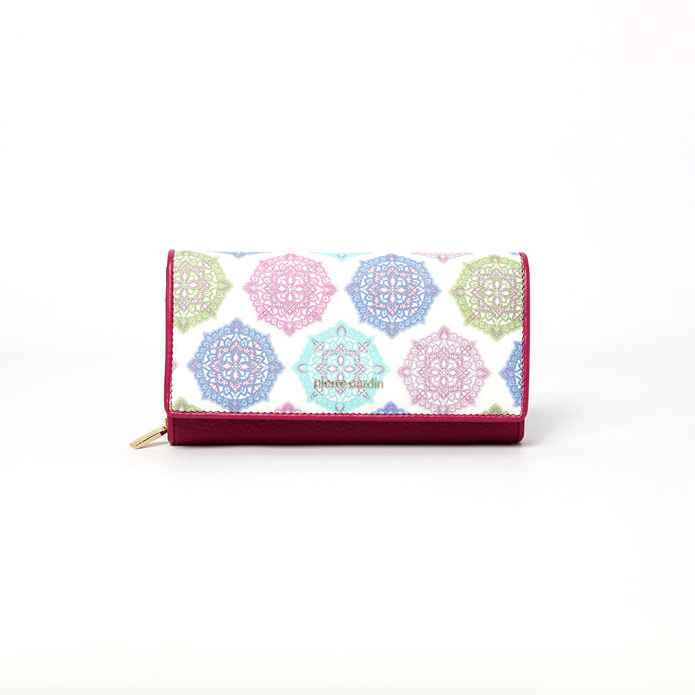 Portafoglio Pierre Cardin fucsia donna Flowers, con la nuova collezione di portafogli Pierre Cardin ha voluto rappresentare una fantasia geometrica e colorata su morbida pelle bianca a contrasto con colori freschi e versatili.