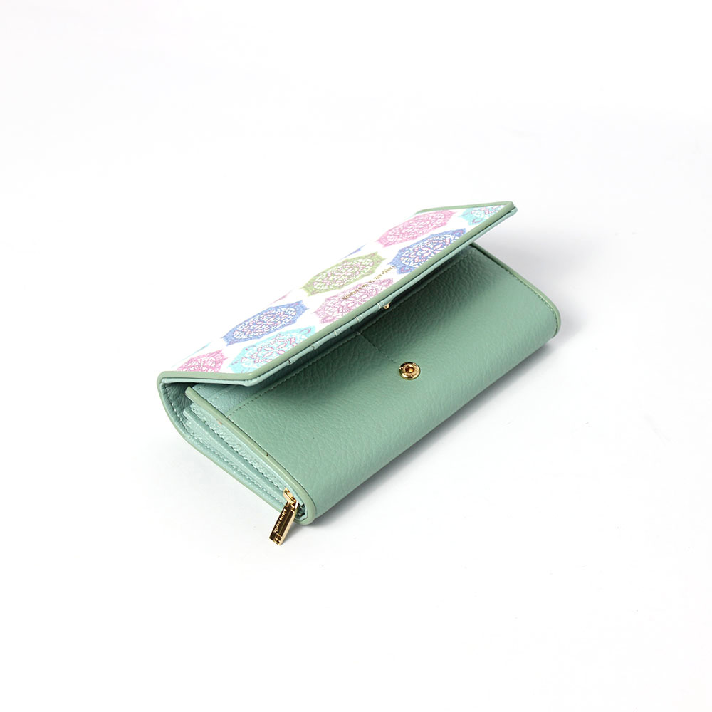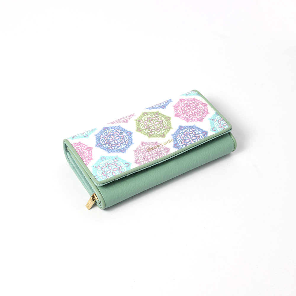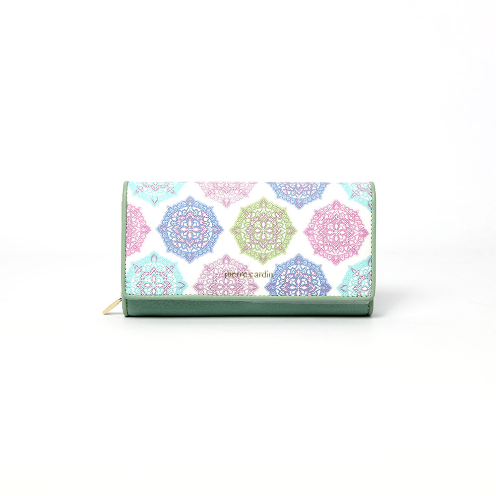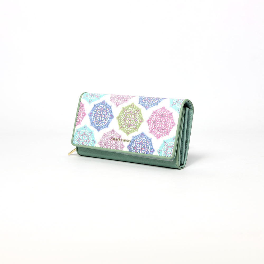 Portafoglio Pierre Cardin verde donna Flowers, con la nuova collezione di portafogli Pierre Cardin ha voluto rappresentare una fantasia geometrica e colorata su morbida pelle bianca a contrasto con colori freschi e versatili.