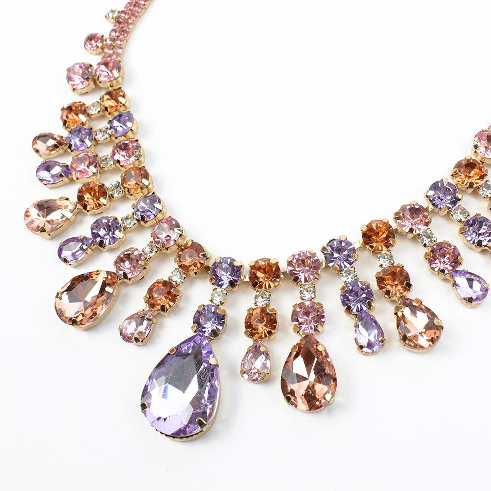 Set collana e orecchini rosa multicolore Lucia è composto da collier e orecchini pendenti in strass acciaio e vetro.
