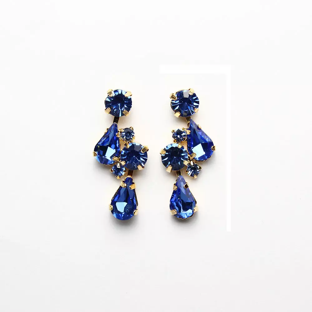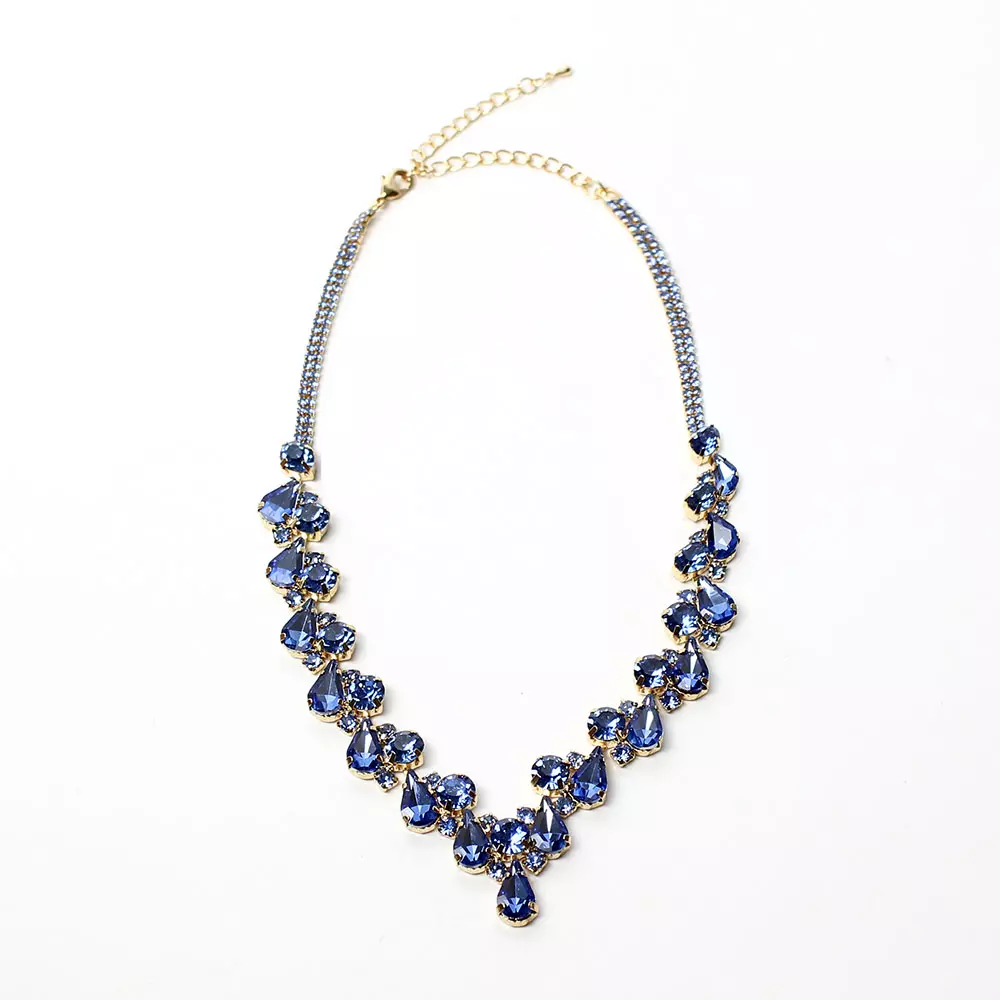 Set orecchini e collana blu da cerimonia Emily è composto da un collier in pietre sfaccettate e strass, con orecchini pendenti di 3,5 cm con chiusura a perno.