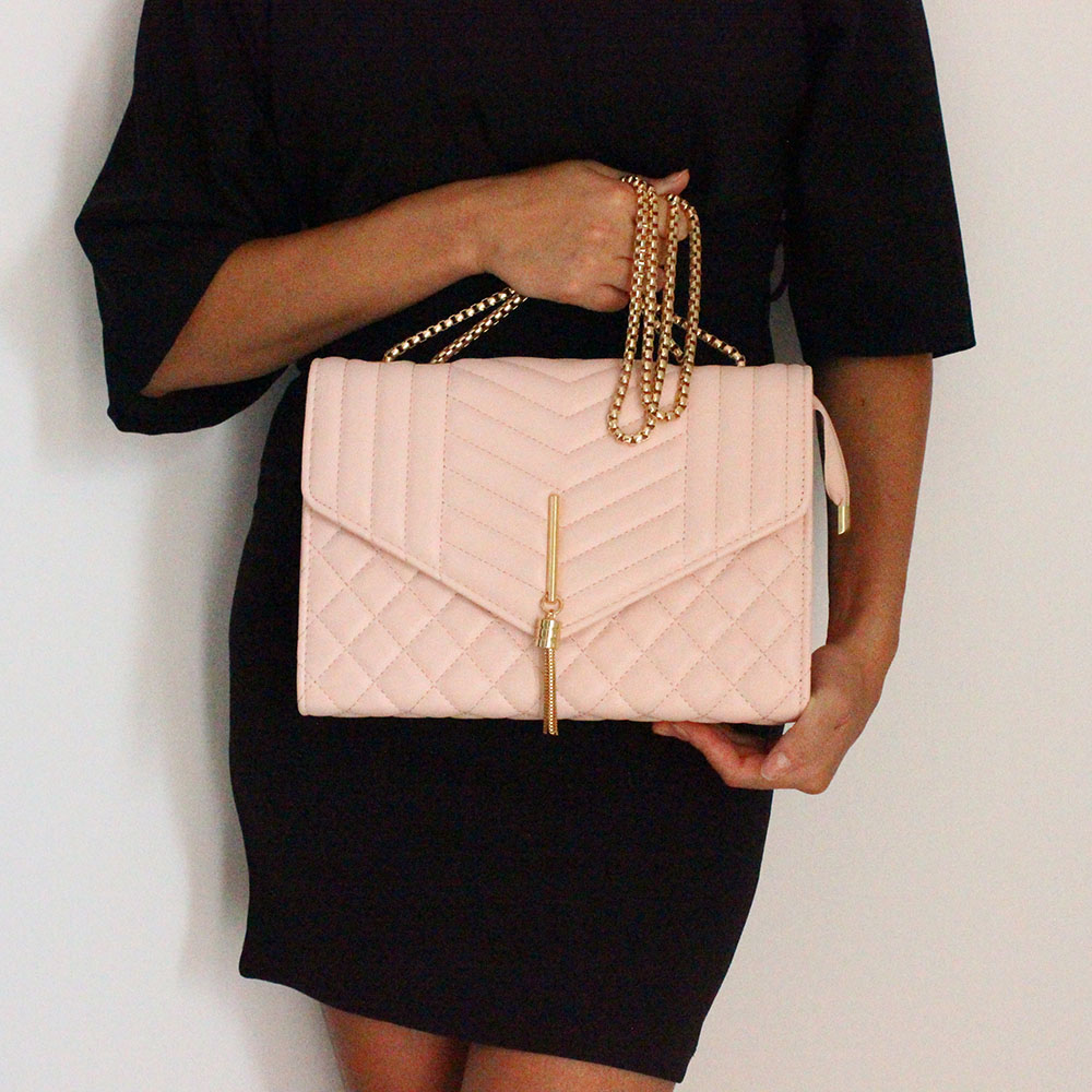 La tracolla con catena incorporata non è rimovibile, ma è regolabile, per portarla a spalla, a mano o a braccio.