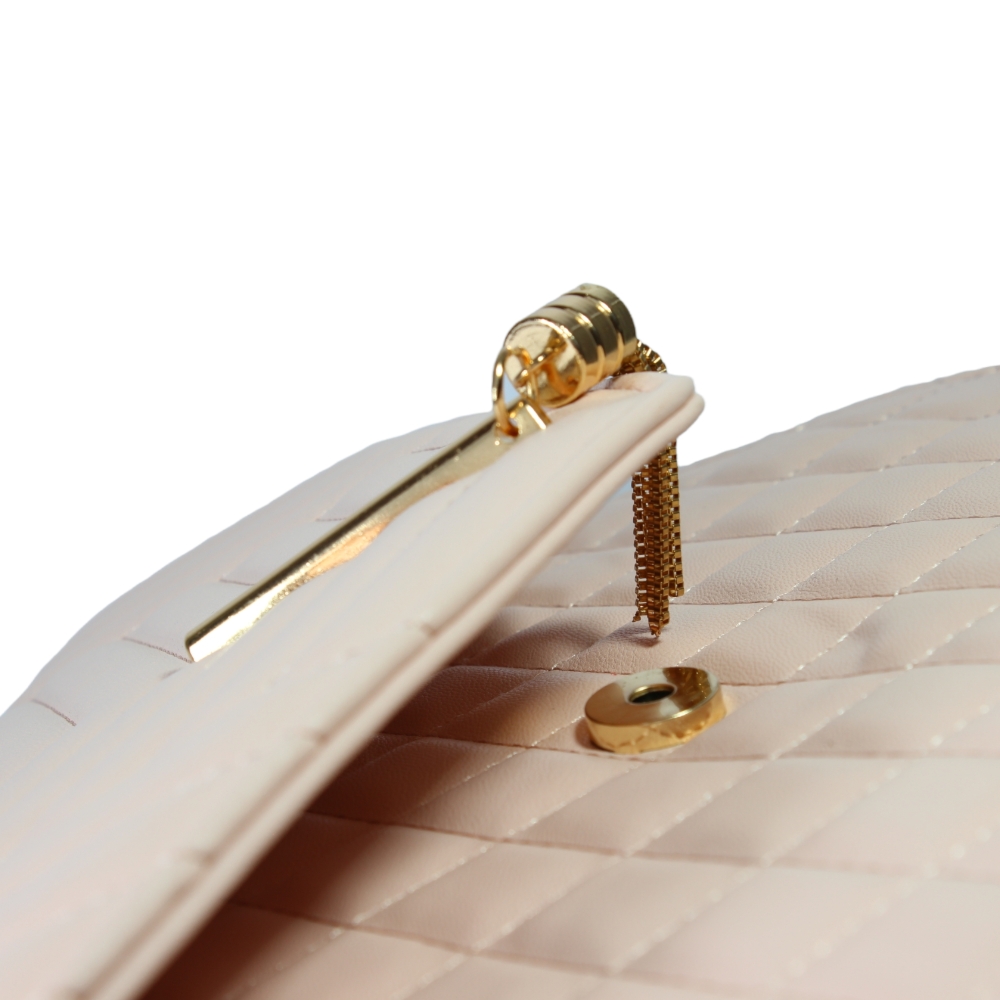 Tutte le rifiniture sono in metallo in un colore oro molto delicato.