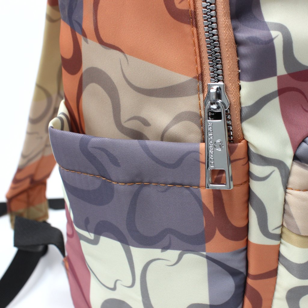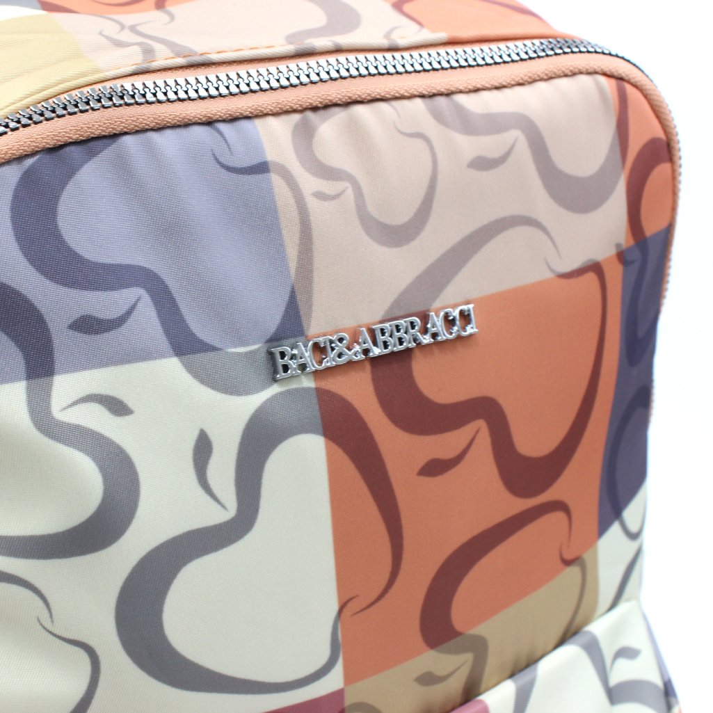 Zaino Baci & Abbracci multicolore con logo, un accessorio vivace e originale realizzato in tessuto resistente, presenta un design innovativo con tonalità calde come arancio, beige, bordeaux, blu e grigio, impreziosito da un motivo astratto a forma di cuore che richiama l’iconico stile del brand. L’interno è spazioso e foderato con logo stampato, completo di una pratica tasca con zip e uno scomparto imbottito, ideale per tablet o piccoli laptop, sono inoltre presenti altre due piccole tasche a soffietto. Sul davanti è presente una tasca esterna con chiusura lampo, mentre ai lati si trovano comodi scomparti per oggetti di rapido utilizzo. Sul retro, troviamo un’ulteriore tasca chiusa con cerniera. Gli spallacci regolabili e il manico superiore garantiscono comfort e versatilità in ogni occasione. Zaino Baci & Abbracci multicolore con logo è perfetto per l’uso quotidiano, per l’università o per il tempo libero.