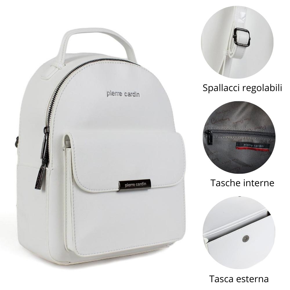 Zaino bianco Pierre Cardin Pastello è realizzato in morbida similpelle di alta qualità con una struttura semirigida.