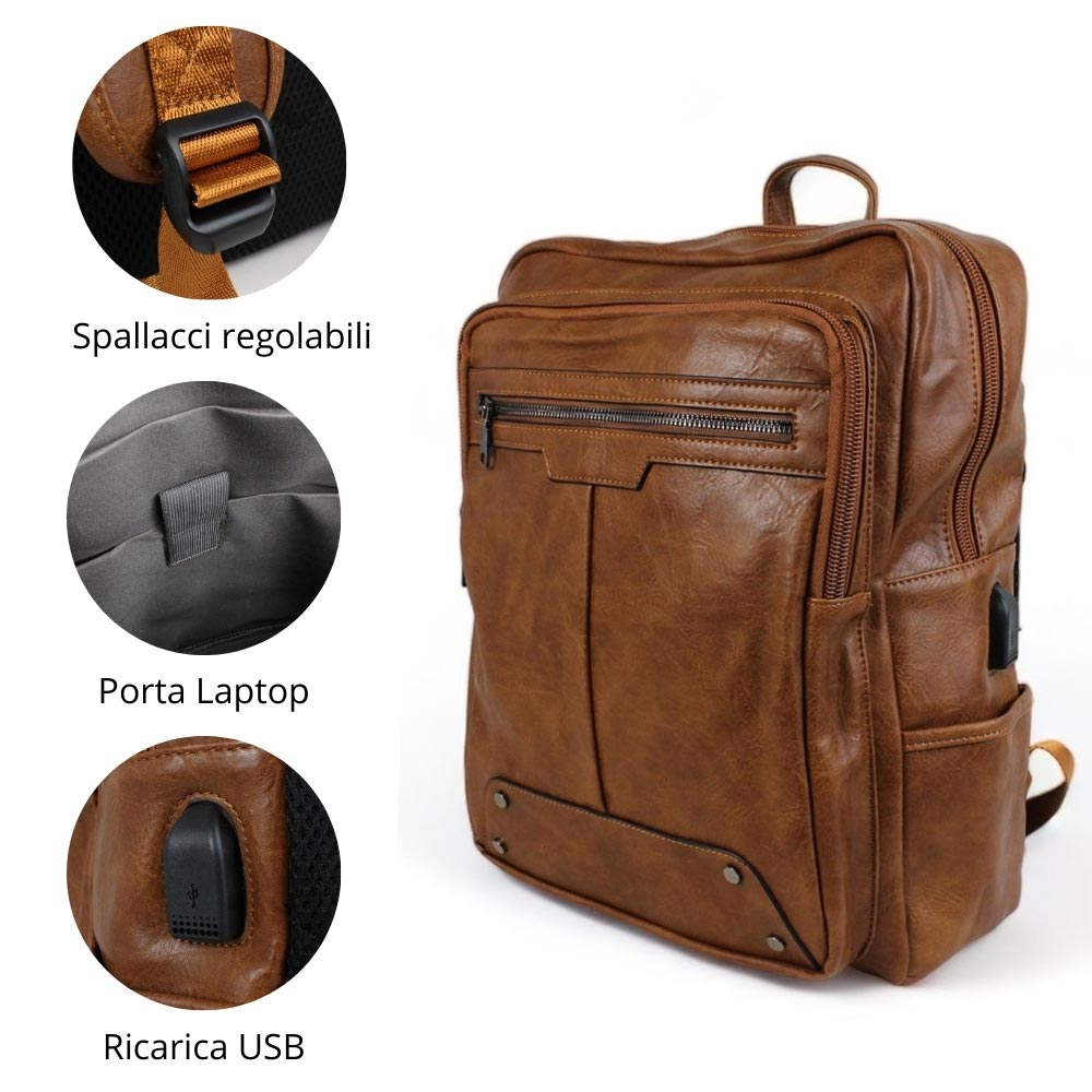 Zaino marrone porta pc con ricarica usb