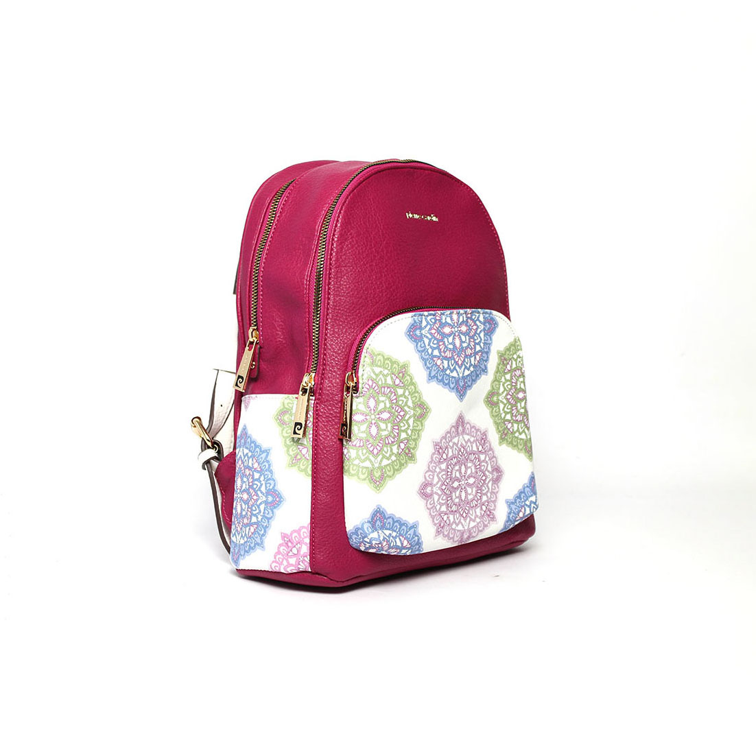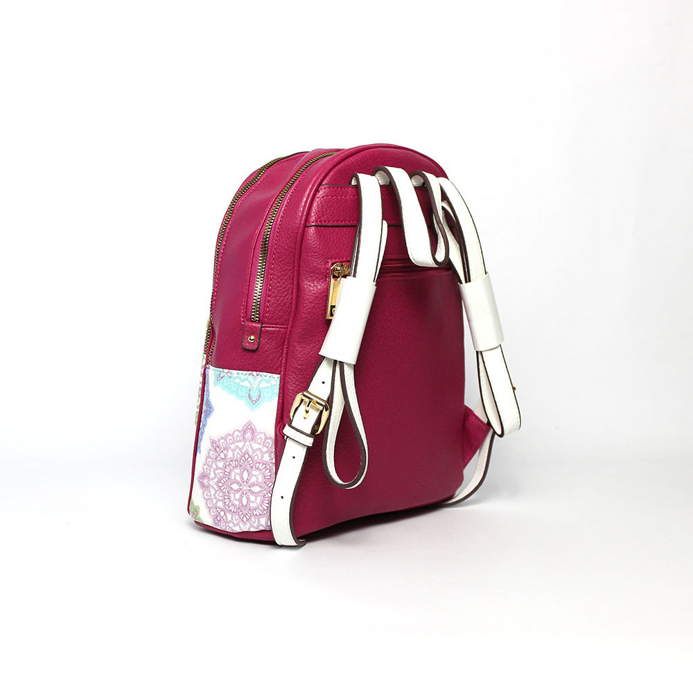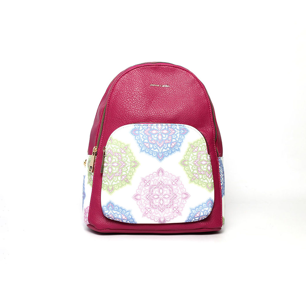 Zaino Pierre Cardin fucsia Flowers è realizzato in pelle sintetica di alta qualità, con particolare fantasia floreale e geometrica.